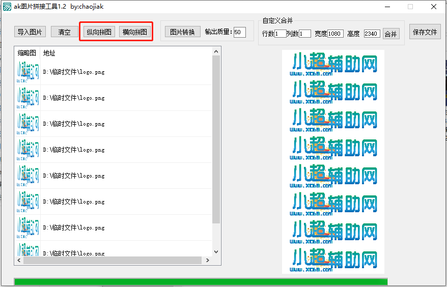 这是一款可以将图片、相片、截图等拼接起来,支持纵向拼图和横向拼图,支持自定义行列合并,只需手动填入图片宽度高度即可合并。