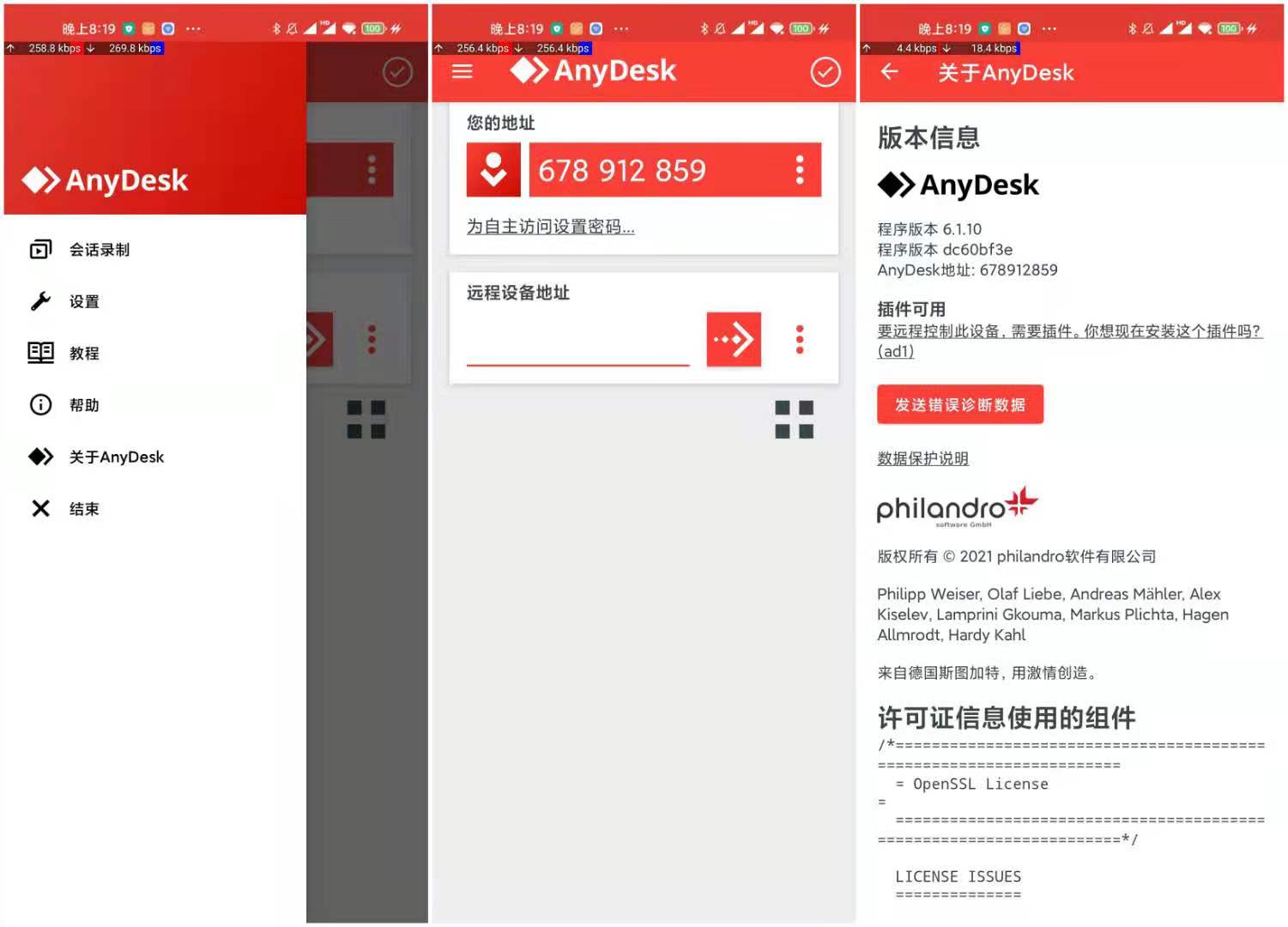 AnyDesk是安卓系统上的终极远程访问应用程序-为您提供真正的移动解决方案,通过安卓设备实现远程桌面连接和控制。并且免费供私人使用!在任何环境中享受无缝连接。您既可以与办公室的设备建立远程桌面连接,也可以使用AnyDesk实现对客户的外部支持。银行标准TLS 1.2技术可保护您的计算机免受未经授权的访问。我们使用RSA 2048非对称密钥交换加密来验证每个连接。通过将受信任的工作台列入白名单来控制谁可以访问您的计算机。这可确保只有获得授权的人才能请求连接。