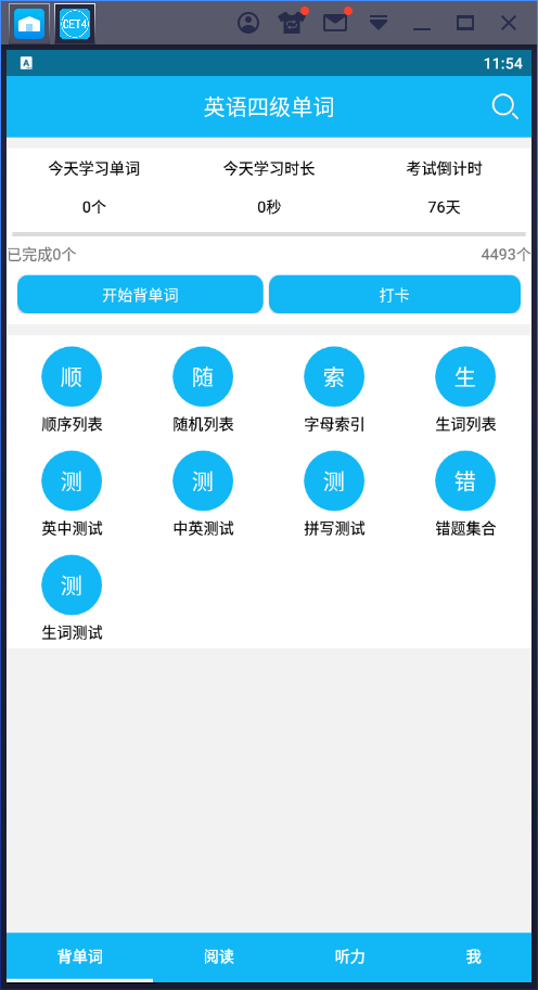 一款专为大学英语四级考试打造的单词记忆软件,主要包括单词顺序记忆,乱序记忆,字母索引分类,单词测试,错题合集,每日一句,单词卡片,生词本,单词信息流以及词汇搜索功能等功能,累计帮助1000万同学通过英语四级考试,有正在备考四级的朋友快来下载吧,去除已知广告和无用布局!