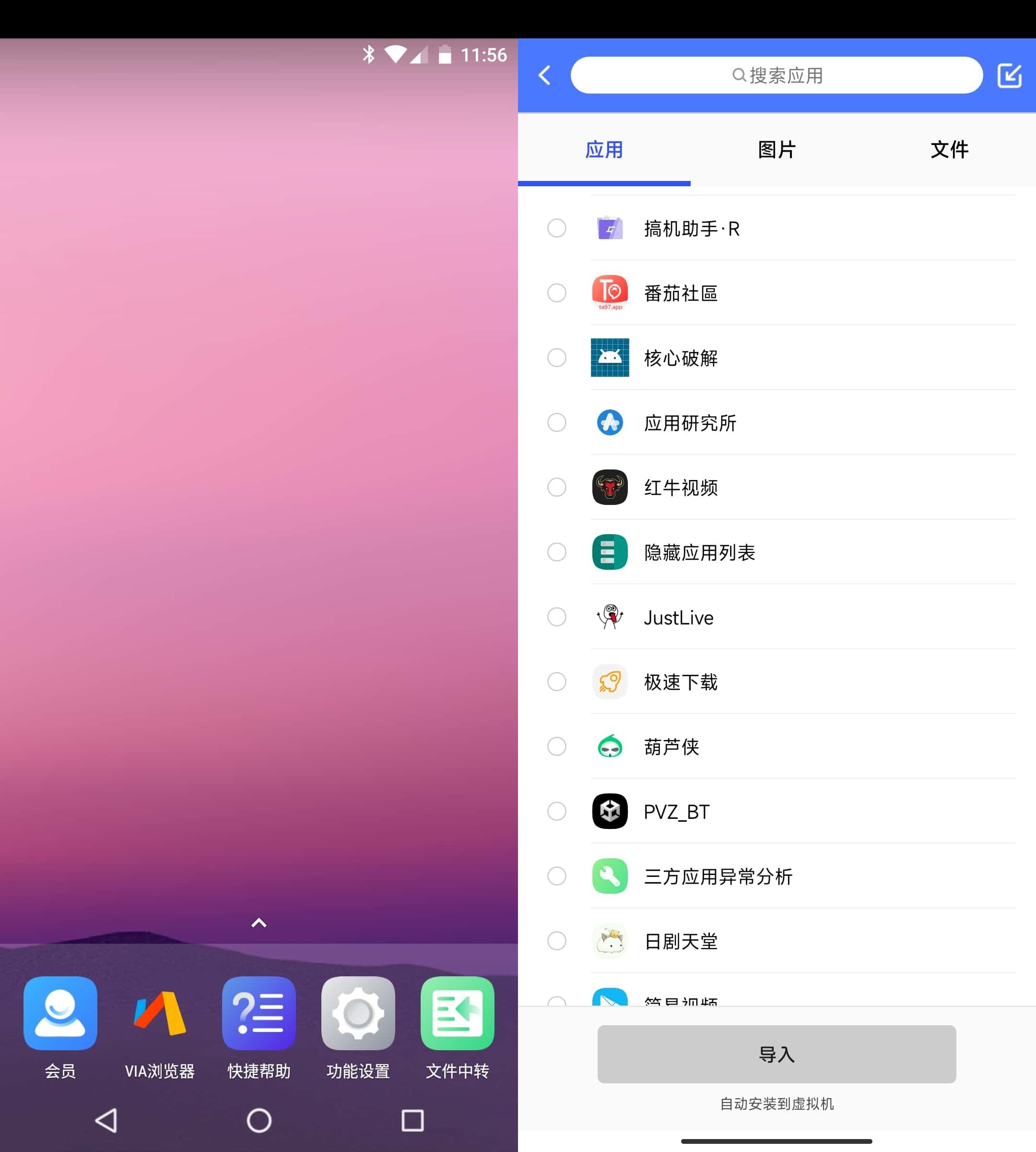 虚拟机同学们应该都不陌生了,电脑上有支撑安卓的虚拟机,可以便利咱们在电脑上玩手机游戏,那安卓手机也有支撑安卓的虚拟机,它可以帮助咱们完成一个新的环境。和本来的手机互不打扰,独立运转,可以完成许多奇特的功用,比如使用多开、游戏挂机等功用。