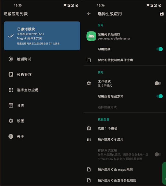 躲藏运用列表(HideMyApplist)模块,一款保护隐私的xp模块,能有用的避免检测到root和xp结构。虽然“检测装置的运用是不正确的做法”,而且很蠢,但是并不是所有的插件类运用都供给了随机包名支撑。这就意味着检测到装置了 root 类运用(如 Fake Location、存储重定向)与检测到了 root 自身区别不大。(会运用检测手段的 app 可不会以为你是在“我就蹭蹭不进去”)