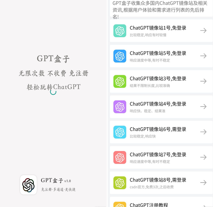 如需无限制体验最新版ChatGPT,请尝试官网注册(软件内附有注册教程)
