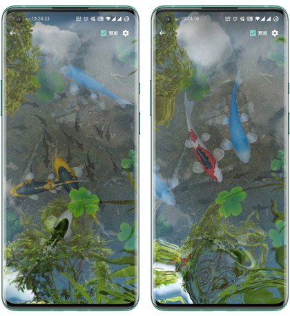 以前的低版本安卓手机都自带一个跟这个差不多的动态壁纸,这款可以说是增强版,效果更逼真,功能更多。一个绚丽、奇妙的锦鲤鱼池3D动态壁纸应用,可立即将您的手机屏幕重塑为一个美丽的超真实锦鲤水池!而且可以用手指手势创造出令人难以置信的,真实的天鹅绒般光滑的水波纹和水波!
