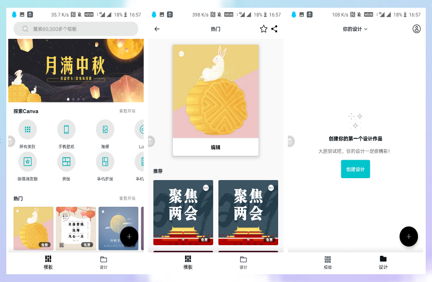 Canva安卓版是一款可以让你随时随地更快制作精美设计的应用软件,拥有Canva app之后你无需有设计经验,也不需要安装复杂的设计软件,只需几分钟你就能设计出你想要的精美设计,用于你的桌面、海报、照片等用途。