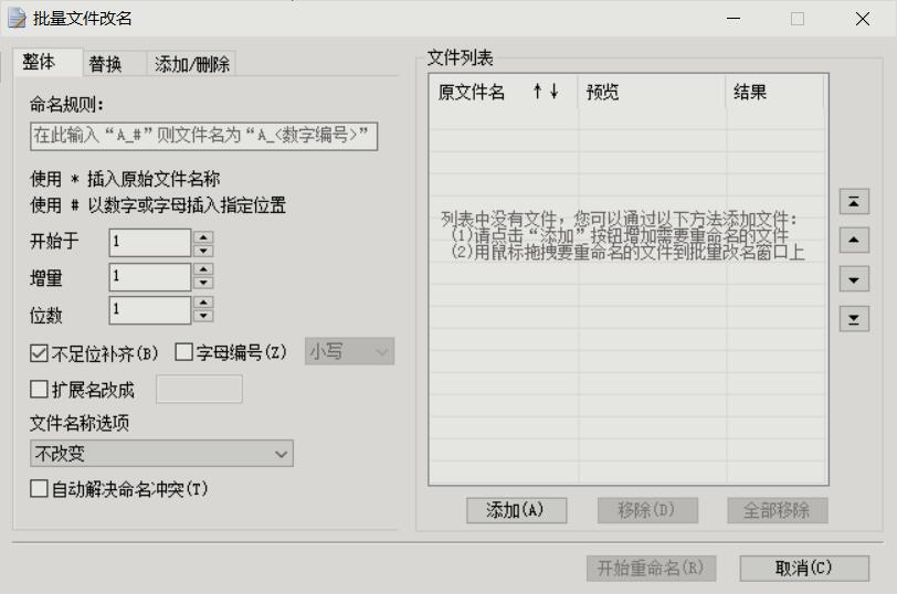 这是一个非常强大和灵活的文件重命名工具,提供了MD5校验、文件批量改名、批量字符替换等功能,软件功能强大,操作简单,可以满足99%的使用需求!