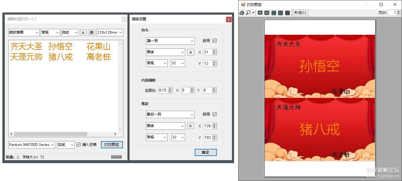 支持抬头(左上)、落款(右下)两排文字设置