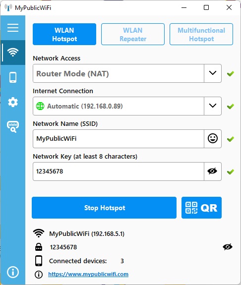 MyPublicWiFi 是一个多功能应用程序,能够通过创建虚拟 Wi-Fi 热点来共享您的 Internet 连接,其他设备可以基于安全的身份验证过程连接到该热点。它适用于家庭使用,也适用于较大的环境,例如酒店、咖啡馆、会议室以及几乎任何需要共享 Internet 连接的地方。