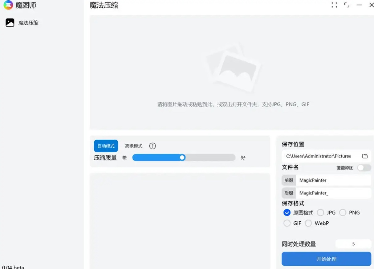 魔图师是本站开发的一款图片压缩软件,使用C#开发,界面美观,体积控制得比较合适,打包出来仅仅10M体积不到。